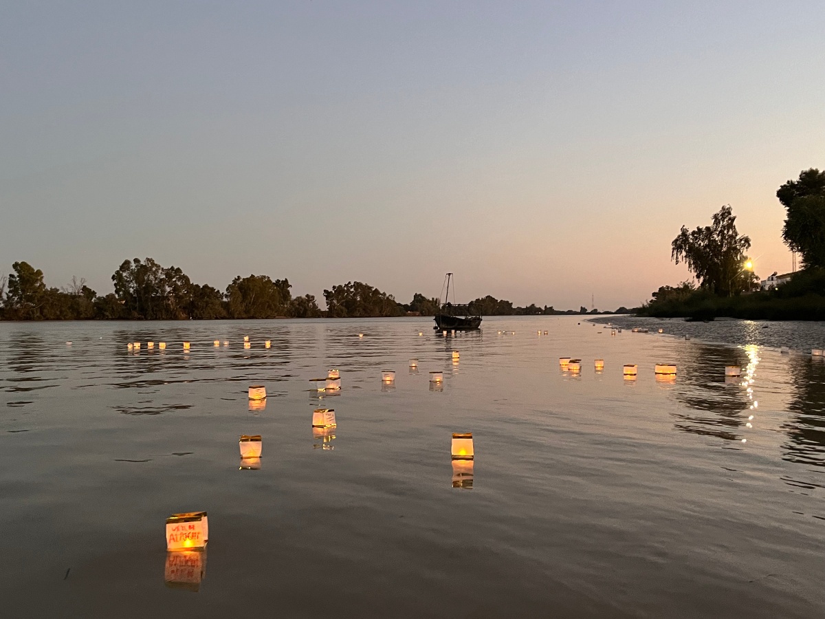 El ritual de las linternas flotantes es una tradición japonesa que se celebra en el paseo marítimo de Coria del Río cada 15 de agosto