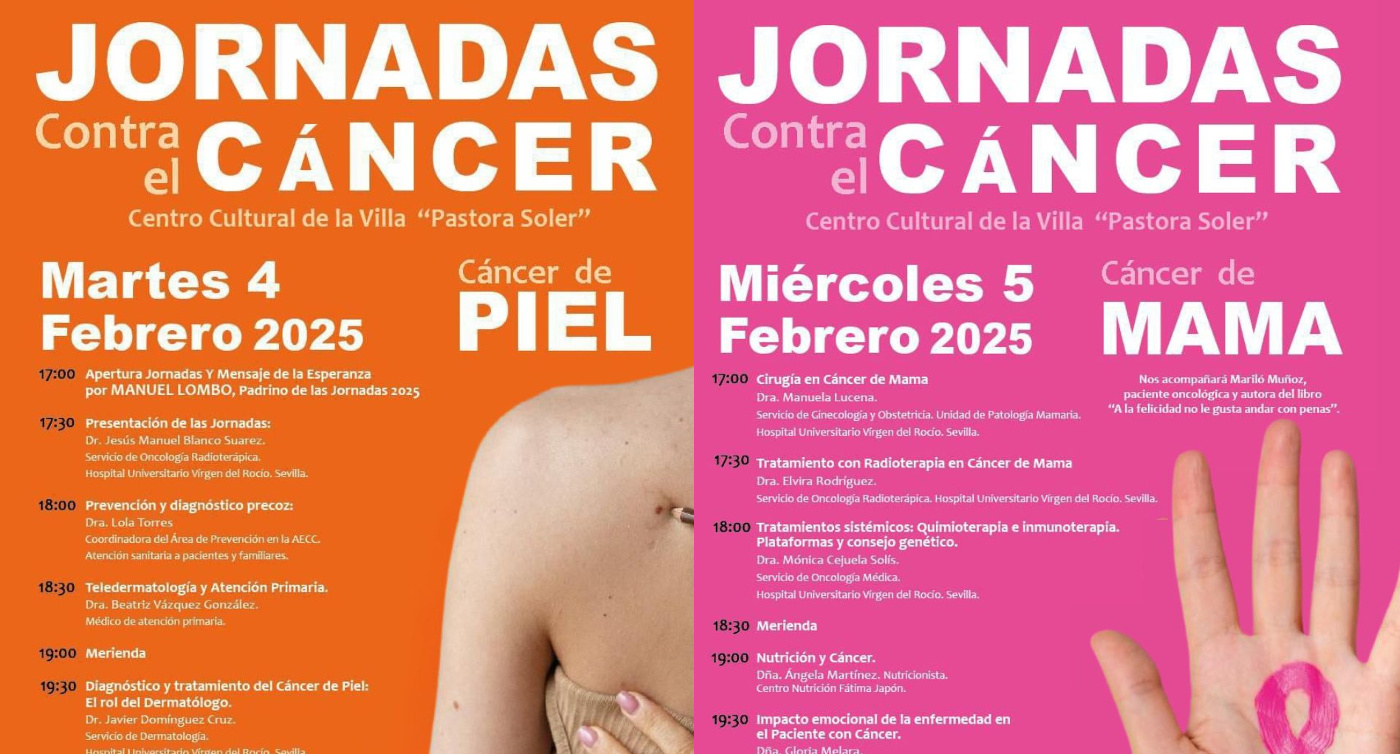 El Centro Cultural de la Villa “Pastora Soler” acogerá los días 4 y 5 de febrero las Jornadas de Salud 2025, que este año se dedicarán al cáncer de piel y al de mama, respectivamente. Enfermedades a las que nos enfrentamos a diario pero no con los conocimientos suficientes de prevención, reacción, tratamiento o las consecuencias del impacto emocional ante el diagnóstico.