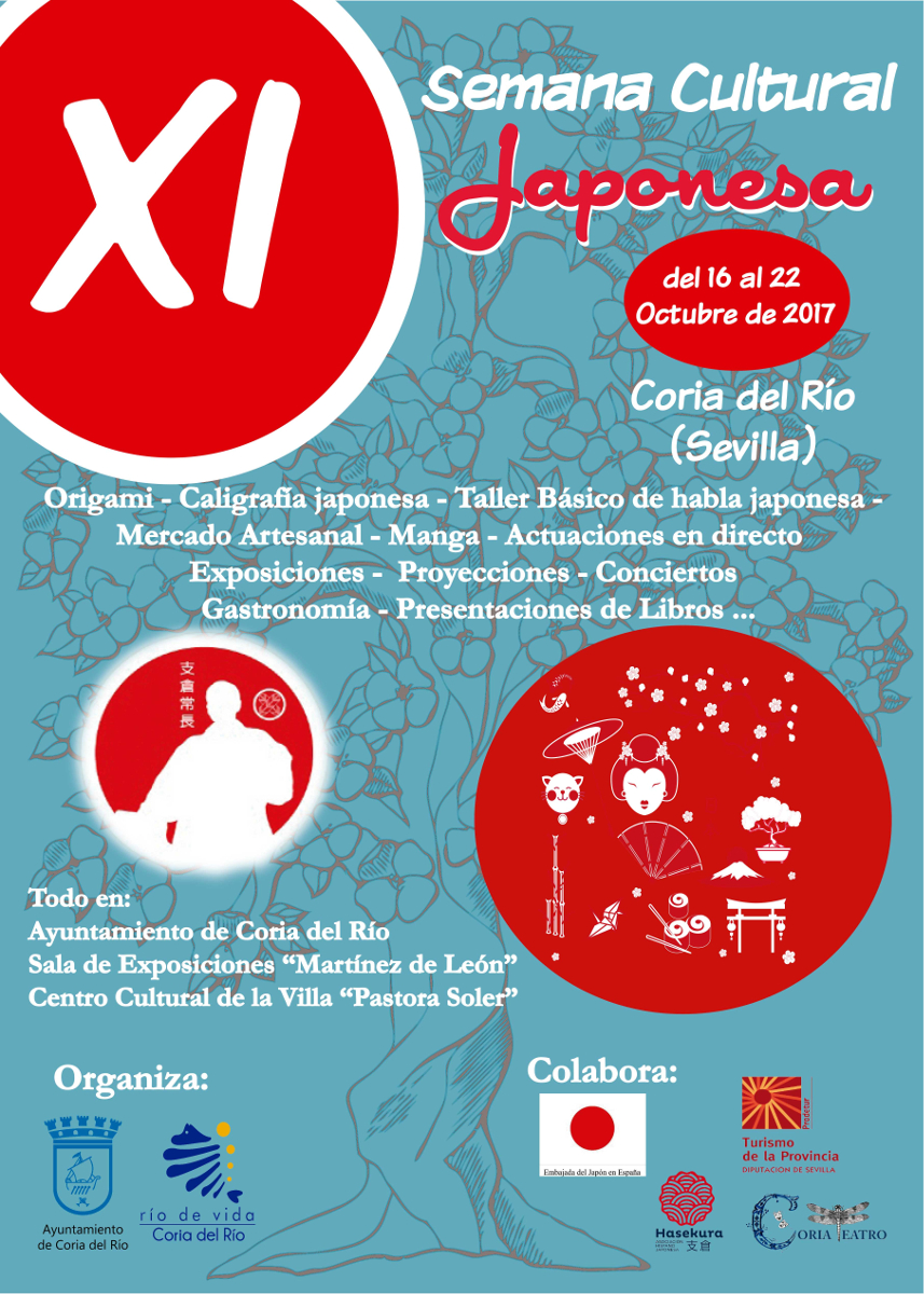 Coria del Río volverá a convertirse, un año más, en referente andaluz y mundial de la cultura japonesa: exposiciones, exhibiciones de artes marciales, degustaciones gastronómicas, cine, teatro, juegos, presentaciones de libros, música, talleres de origami (papiroflexia), de caligrafía, de dibujos en kimonos…una semana repleta de actividades y ocio que además de difundir la cultura japonesa servirá para la integración, la dinamización y el impulso del turismo en la localidad.