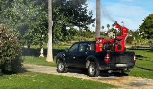El Ayuntamiento de Coria del Río sigue poniendo en práctica su plan de actuación contra el Virus del Nilo. Un plan que comenzó hace unas semanas con el tratamiento de los imbornales y que ahora se complementa con la fumigación en zonas verdes, debido al aumento de la población de mosquitos.