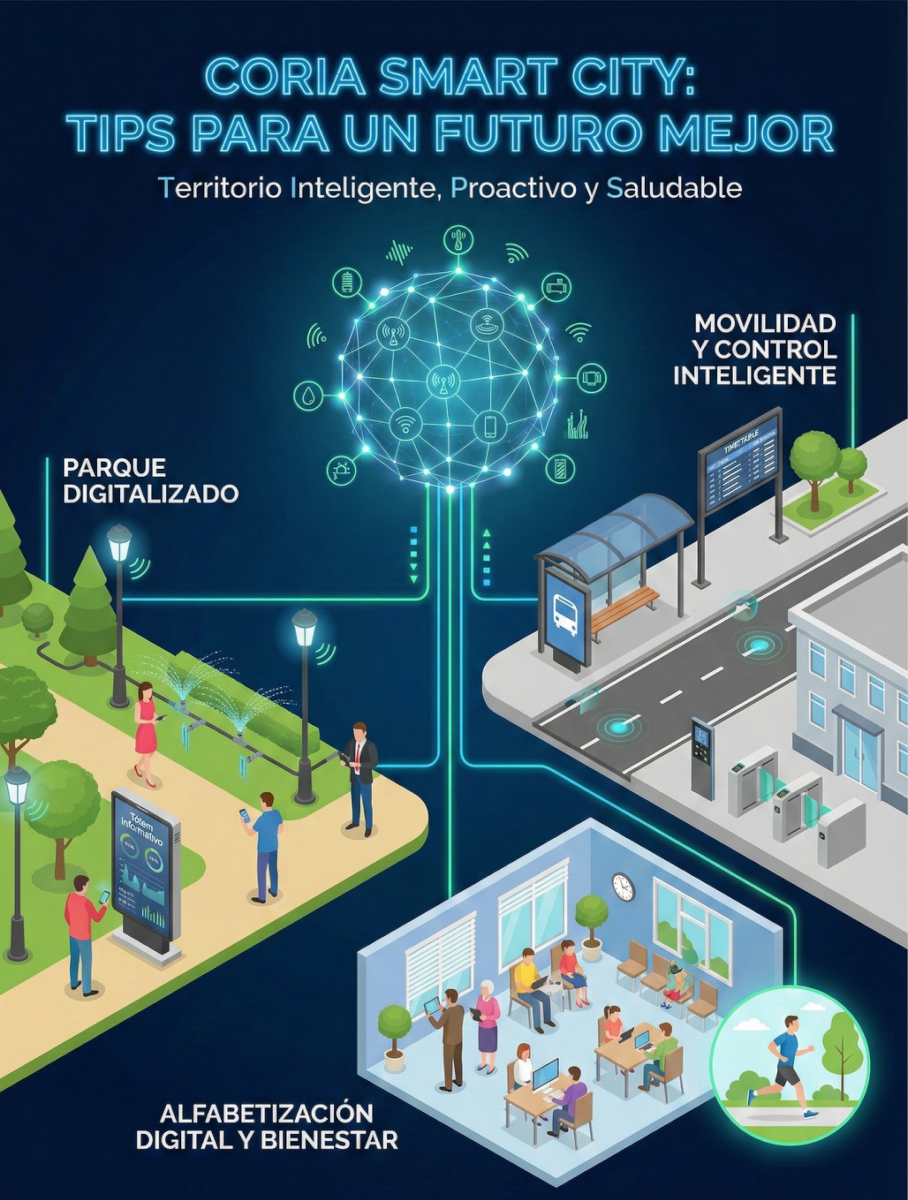 Incluye digitalización de parques, control de aforos y accesos, tótems informativos, lanzadera de aplicaciones, sistema de riego, farolas inteligentes anti vandalismo y alfabetización digital.