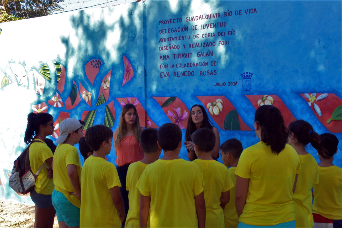 El proyecto ha sido puesto en marcha por la Delegación de Juventud del Ayuntamiento de Coria del Río, y ha sido diseñado y realizado por la artista local Ana Tiravit Galán, con la colaboración de Eva Renado Rosas, autoras ambas, presentes también durante el acto de inauguración.
