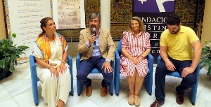 El alcalde de Coria del Río, Modesto González, la mecenas Cristina Heeren, la bailaora Pastora Galván, y el ganador del XXVII Concurso de Cante de la categoría de adultos, Antonio Sánchez, han presentado hoy en la sede de la Fundación Cristina Heeren la XV Noche Flamenca en el Cerro. Un evento cultural, organizado por el Ayuntamiento de Coria del Río con la colaboración de la Peña Cultural Mazaco, que vuelve un año más constituyendo una cita de referencia del mejor flamenco, cante y baile, y que tendrá lugar en el Cerro de San Juan –lugar delarado Bien de Interés Cultural.